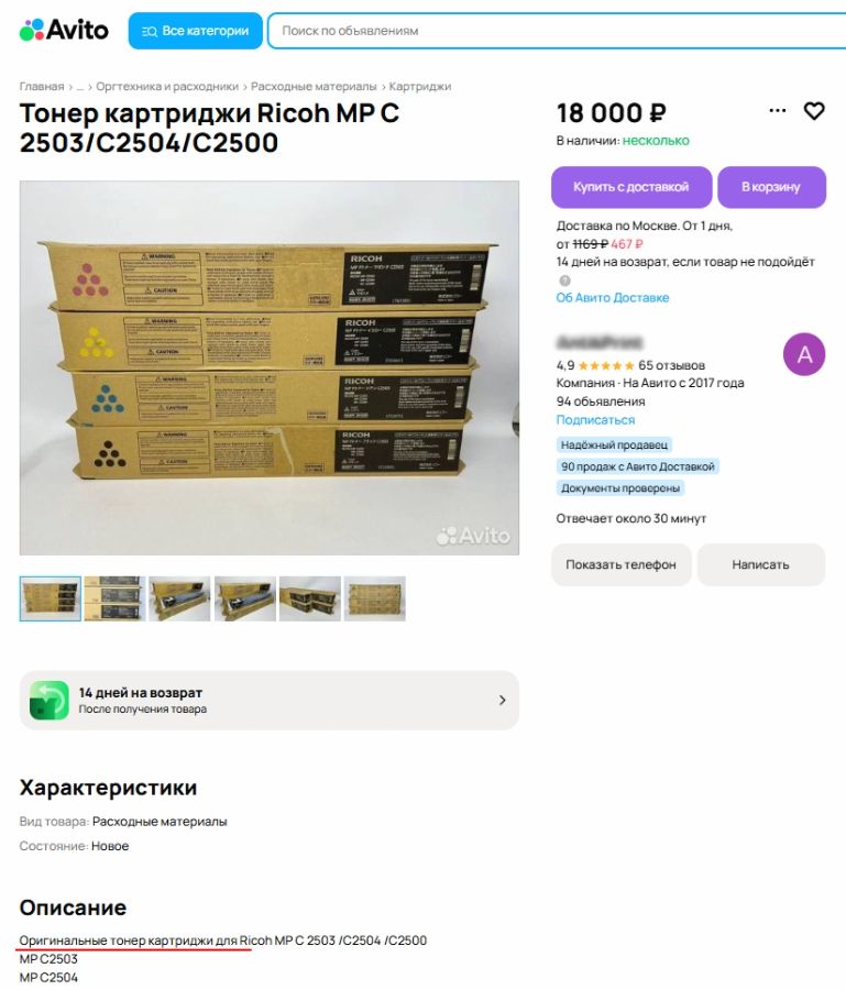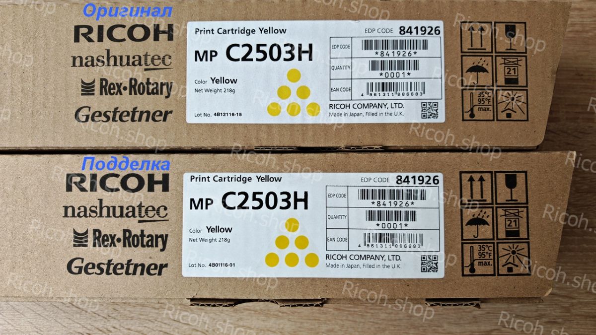 Мы рекомендуем приобретать расходные материалы Ricoh только через официальный канал продаж, и обращать внимание на цену — если она значительно ниже рыночной, это явный сигнал о возможной подделке.