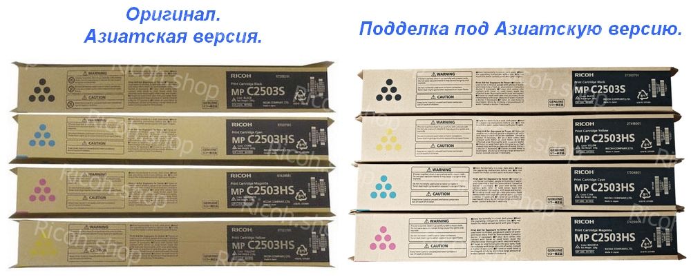 С недавних пор российский рынок расходных материалов для печатной техники Ricoh начали осваивать продавцы подделками из Китая. Чуть меньше, чем за год они провели огромную работу по приведению внешнего вида фальшивого тонера Ricoh к максимально возможному соответствию оригиналу. Упаковка, этикетки, штрихкоды — всё теперь выполнено с пугающей точностью, что делает визуальное отличие подделки от подлинного продукта практически невозможным для обычного пользователя.