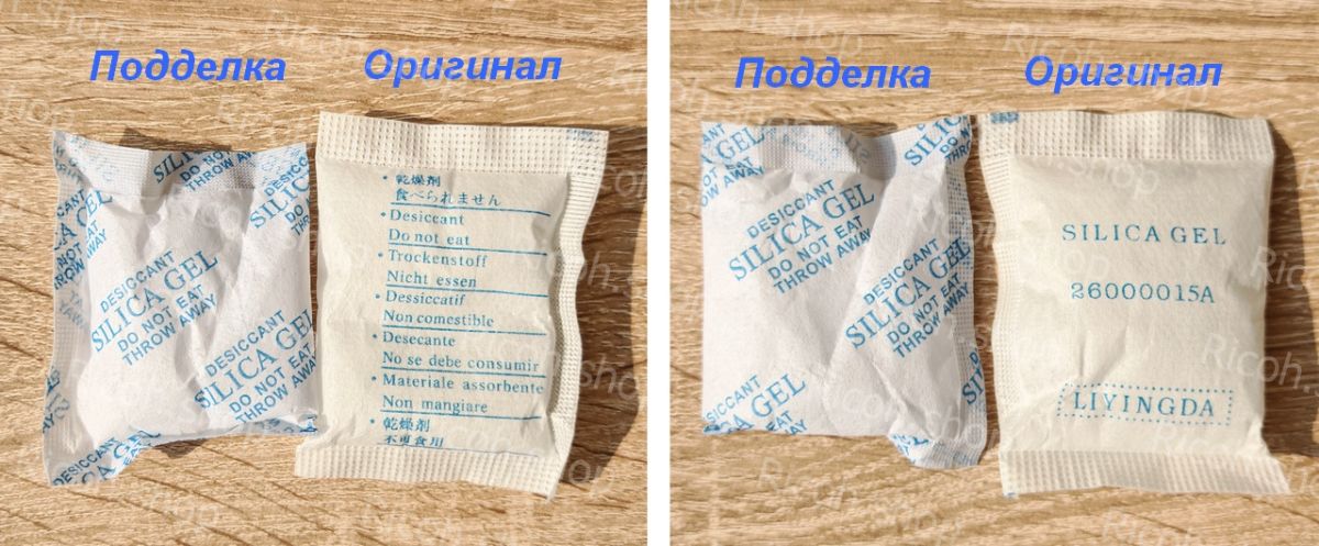 Пакетик с селикагелем точно такой же, как в ноунэйм совместимом тонере, который был специально приобретен для сравнения.