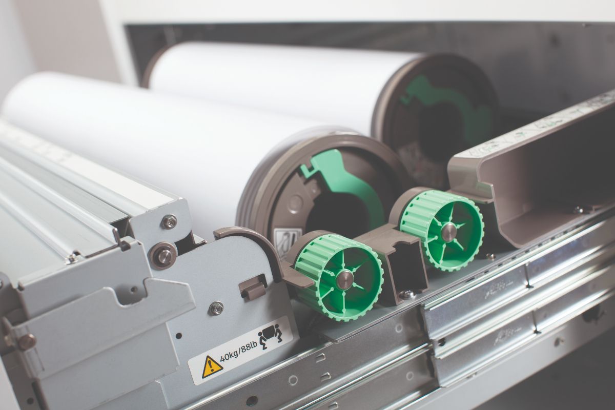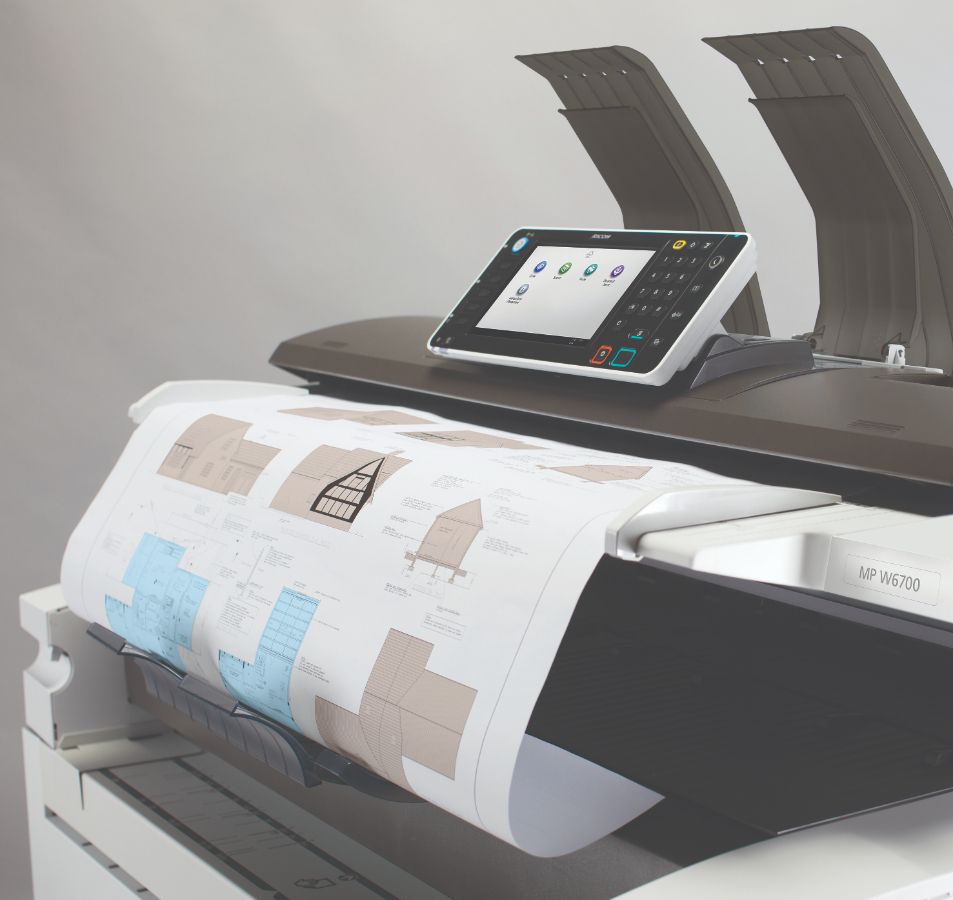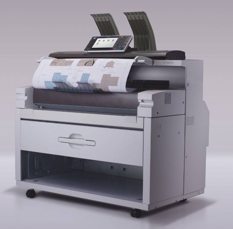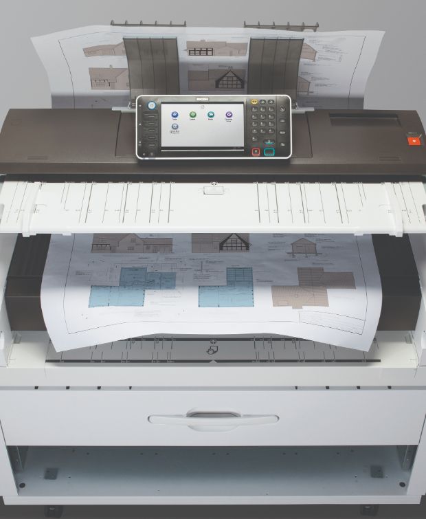 Новая конструкция включает два стандартных рулона бумаги 210 x 914 мм с максимальной длиной 150 000 мм. Рулоны располагаются внутри корпуса аппарата вместе с принтером, копиром и сканером. Это означает, что нет необходимости в дополнительной установке опций.