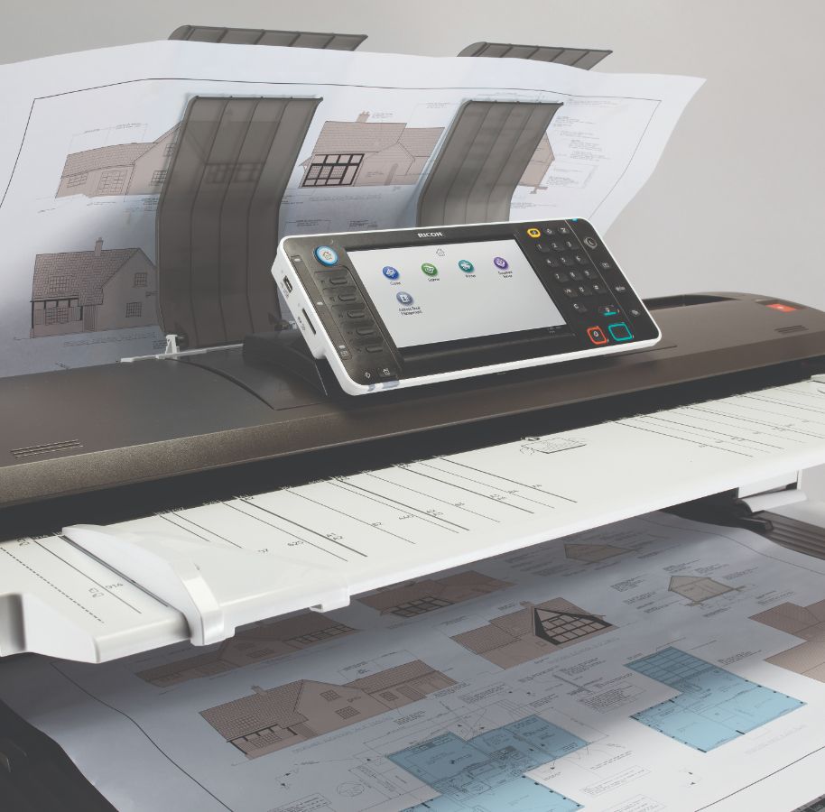 • Она также дает возможность сканировать чертежи на устройстве компании Ricoh с последующей печатью на другом аппарате или плоттере